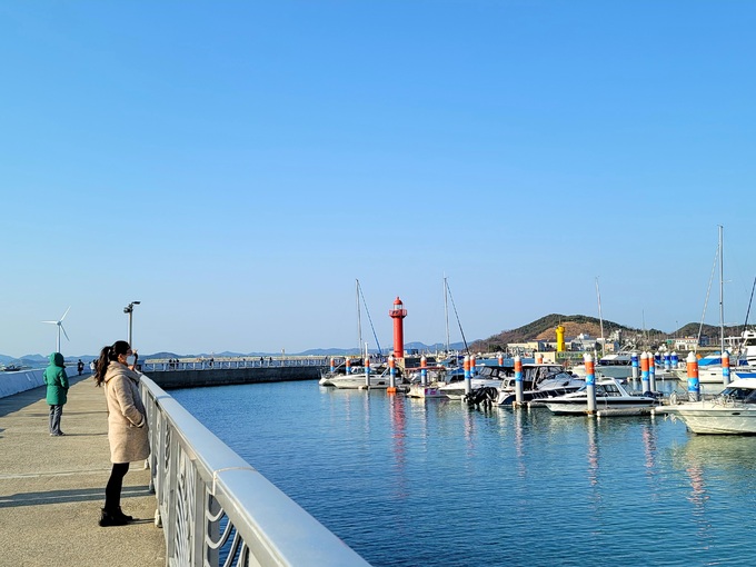 아직은 상쾌한 바닷바람을 즐기며 해안을 따라 걷는다. 영문 ‘MARINA’로 만든 예쁜 조형물을 만나면 항구 전체를 배경으로 인증샷을 남기는 포토존이다. 맞은편에는 전곡항마리나 클럽하우스가 자리 잡고 있다. 이곳에 오르면 아름다운 항구와 요트, 주변 섬들이 만들어내는 환상적인 풍경이 파노라마로 펼쳐진다. 사진을 찍고 보니 저 멀리 전곡항의 마스코트인 빨간 등대가 모습을 드러낸다.
