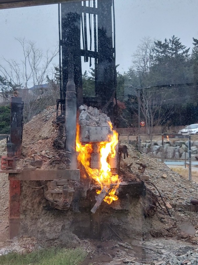 28일 포항시에 따르면 한 공사업체가 2017년 3월 8일 남구 대잠동에서 철길숲에 사용할 지하수 개발을 위해 굴착기로 지하 200m까지 관정을 파던 중 땅속에서 나온 천연가스로 불이 붙었다.