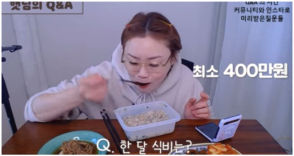 구독자 158만 명을 보유한 인기 먹방 유튜버 입짧은 햇님(사진)이 한 달 식비를 공개했다.