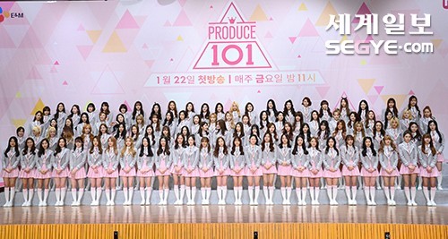 지난 2016년 1월 21일 서울 여의도 63 컨벤션에서 열린 Mnet '프로듀스101' 시즌1 제작발표회에 참석한 연습생들이 포즈를 취하고 있는 모습.사진=김경호 기자