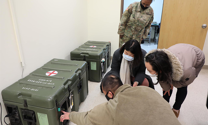 질병청, 주한미군 백신센터 방문 입력 : 2021-01-29 22:36:36 수정 : 2021-01-29 22:36:35 구글 네이버 유튜브 질병관리청 관계자들이 29일 경기 평택시 캠프 험프리스 내 브라이언 올굿 병원을 방문해 주한미군 관계자로부터 코로나19 백신 보관용 휴대용 냉동고에 대해 설명을 듣고 있다. 브라이언 올굿 병원 페이스북 캡처 Copyright ⓒ 세계일보. 무단 전재 및 재배포 금지 세계일보 -