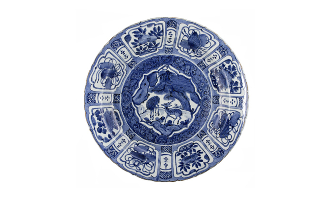 그러나 유럽 사회는 중국, 일본 문화의 열광적인 소비자로만 남지 않고, 자신들의 문화를 새겨넣었다. ‘크락 자기’가 대표적인 사례다. 그릇 중앙에 원형으로 중심 무늬를 넣고, 그 주위를 몇 개의 구획으로 나눠진 그림창을 배치하는 양식이다. 유럽의 주문이 활발해지면서 크락 자기의 중앙에는 유럽 가문의 문장이나 서양 인물, 신화 등이 그려지기 시작했다. 박물관은 “서양풍 중심 문양 둘레에 동양풍 문양이 함께 그려진 크락 자기야 말로 동서양 문화의 만남 과정을 보여주는 대표적인 문화유산”이라고 소개했다.