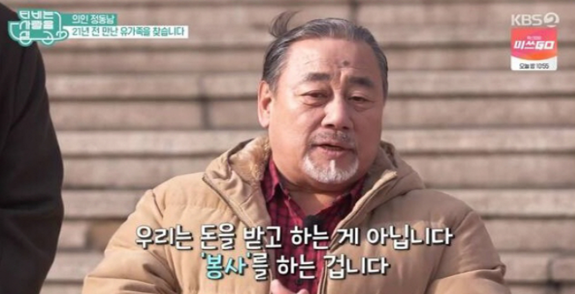 당시 16살이던 정동남의 남동생이 물놀이를 하다가 물에 빠져 세상을 떠났다고. 정동남은 “동생이 물에 빠졌는데 정체 모를 두 사람이 와서 돈을 요구했고 아버지가 어렵게 구한 돈을 건네자 그 사람들이 3분 뒤 동생의 시신을 건졌다”며 “그때 ‘물에 빠진 사람은 무슨 일이 있어도 건져야 한다. 시신 수습을 하고 돈을 받는 건 옳지 않다’고 다짐했다”고 언급했다.