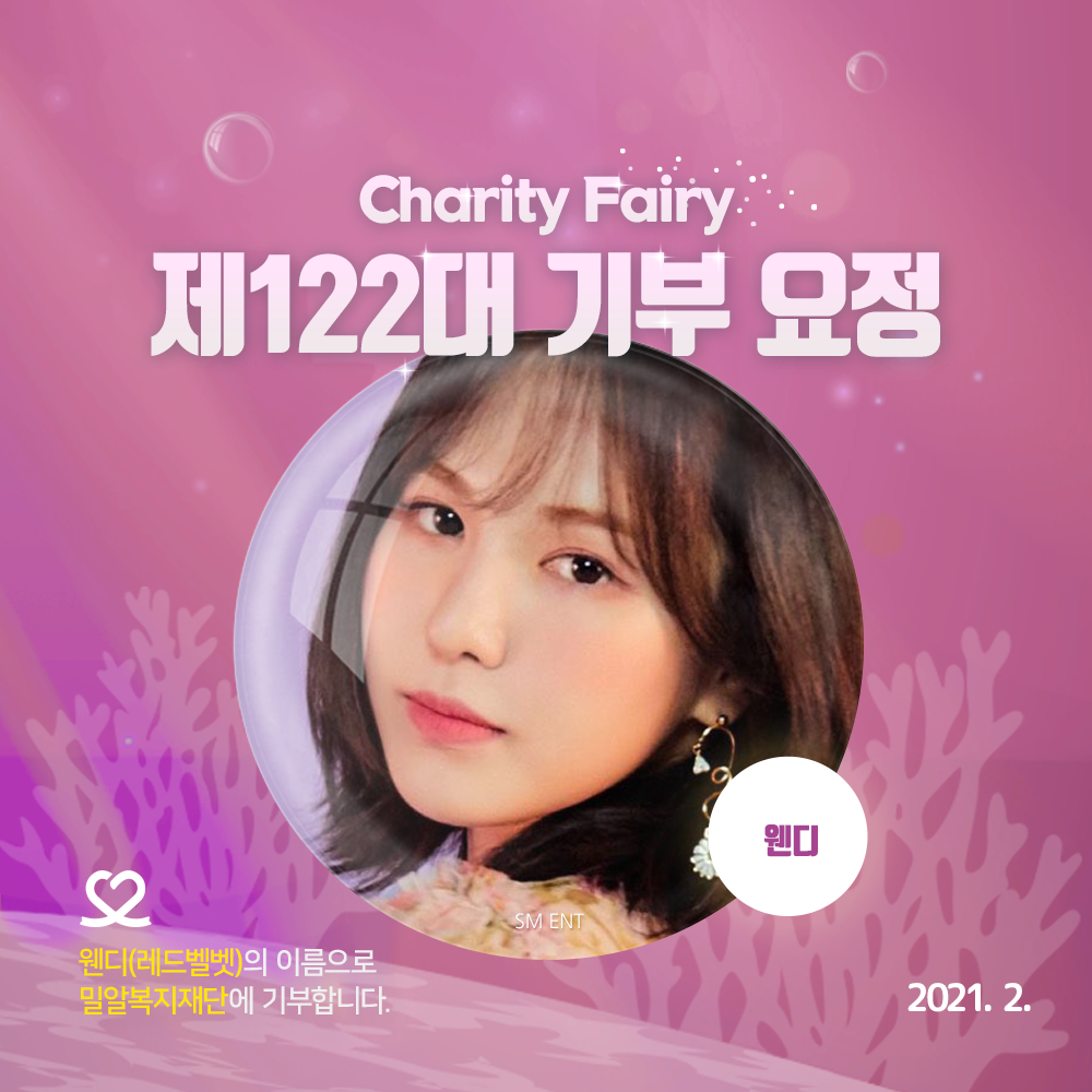 걸그룹 레드벨벳(Red Velvet) 웬디가 ‘기부요정’으로 등극, 그의 이름으로 기부금이 전달된다.