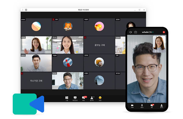 네이버 계정이나 웨일 스페이스 계정으로 쉽게 시작할 수 있는 ‘웨일온’은 HD급의 영상 품질, 최대 500명까지 동시에 참여할 수 있는 넉넉한 회의환경을 제공한다.