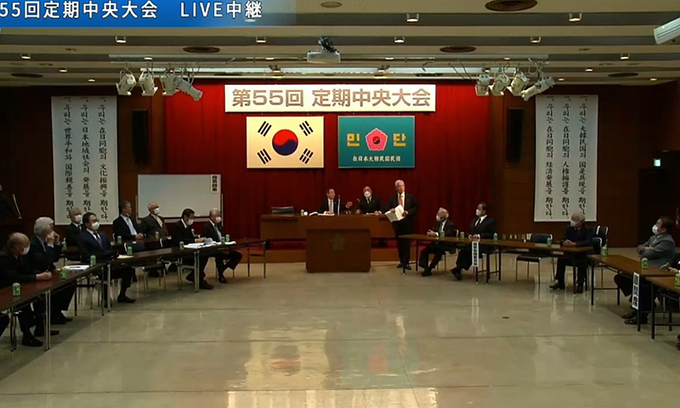 민단 최고 의결기관인 중앙대회가 12일 개최돼 여건이(72) 현 단장과 임태수(59) 부단장이 격돌한 임기 3년의 단장 선거 개표 여부를 놓고 진통을 겪었다. 민단 선거관리위원회는 오후 2시 시작된 중앙대회에서 도전자인 임 부단장의 전력을 이유로 후보 등록 취소를 보고해 파란을 예고했다.