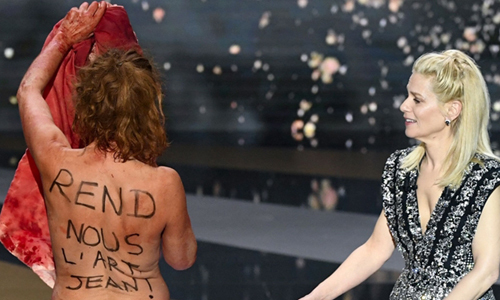 프랑스 국민여배우로 불리는 배우 코린 마시에로(사진 왼쪽)가 세자르 영화상 시상식에서 누드 시위를 해 눈길을 끈다.