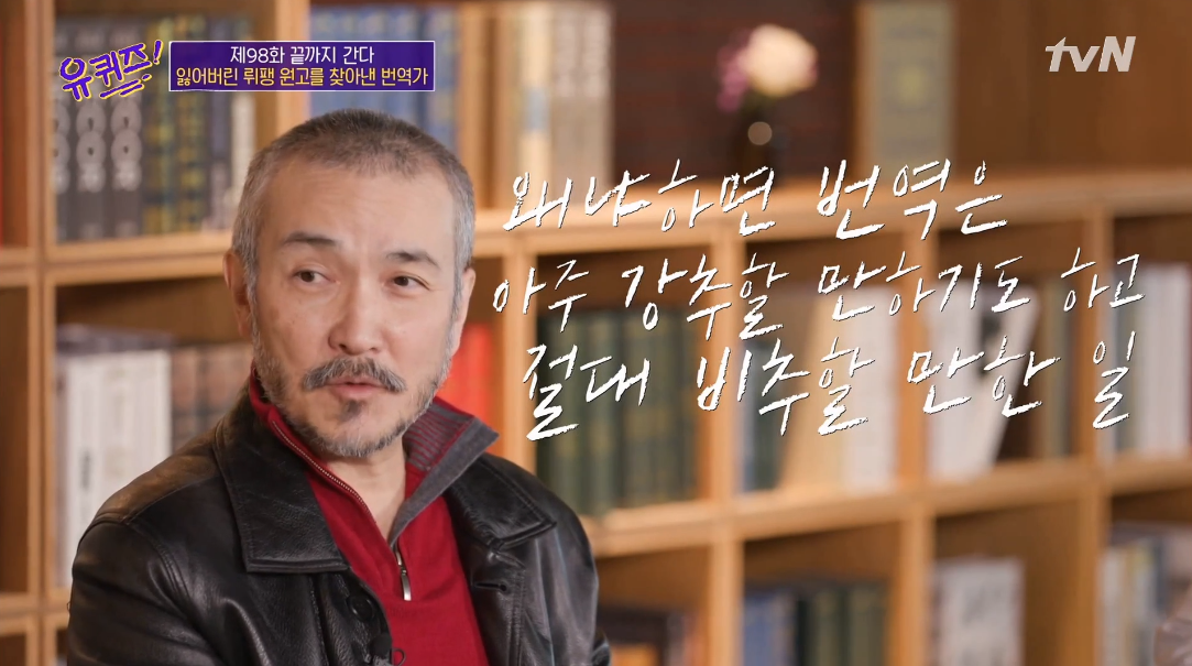 17일 방송된 tvN ‘유퀴즈 온더 블럭’은 ‘끝까지 간다’ 특집으로 꾸며져 세계 최초로 잃어버린 뤼팽 원고를 찾아내 전집을 낸 번역가 성귀수가 게스트로 출연했다. 21년 차 번역가인 그는 아르센 뤼팽 전집을 완성하기 위해 뤼팽 연구가를 직접 찾아갔다고.