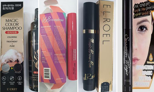 해당 제품은 △엘로엘 매직 브로우 펜 △엘크릿 헤나 틴트 아이브로우(진갈색) △엘크릿 헤나 틴트 아이브로우(진회색) △엘크릿 헤나 틴트 아이브로우 마스카라(진갈색) △엘크릿 헤나 틴트 아이브로우 마스카라(회갈색) △엘크릿 헤어 볼륨틴트 브러쉬(흑색) △엘크릿 헤어 볼륨 틴트 브러쉬(흑갈색) △엘크릿 매직 컬러 샴푸 △삐아 라스트 아이브로우 틴트 △매직타투 아이브로우(다크브라운) △룩 168타투 아이브로우(다크브라운·제조업자 (주)청수코스메틱) △룩 168타투 아이브로우(네츄럴브라운·제조업자 (주)청수코스메틱) 12종이다.