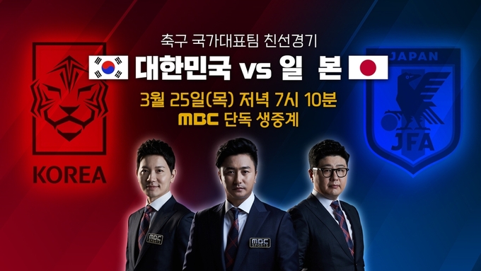 축구 국가대표팀 친선경기 대한민국 대 일본 경기가 오늘(25일) 오후 7시 10분 MBC에서 단독으로 생중계한다.