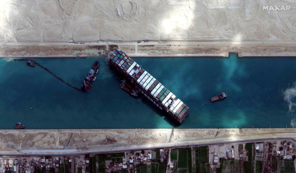 대만 해운사 에버그린의 대형 컨테이너선 에버기븐호가 좌초해 이집트 수에즈 운하의 뱃길이 엿새째 막힌 28일(현지시간) 수위가 높아지는 만조 동안 선박을 물에 띄우려는 시도가 시작됐다. 수에즈 운하를 가로막고 있는 컨테이너선 철거가 장기화될 것으로 전망되며 국내 해운산업과 수출·수입업계가 긴장하고 있다. 최근 해상운임 상승과 컨테이너 부족 등 어려움을 겪는 수출입 기업들은 사태가 장기화할 경우 물류 부담이 더 커질 것을 우려하고 있다.