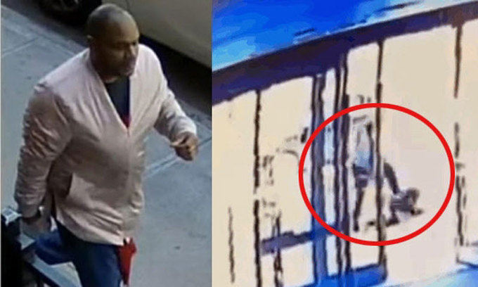 미국 뉴욕 맨해튼에서 65세 아시아 여성을 폭행한 용의자 브랜던 엘리엇, 폭행 상황을 담은 CCTV 영상. NYPD 공식 트위터