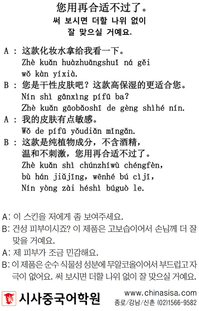 [시사중국어학원의 리얼 중국어 회화] 써 보시면 더할 나위 없이 잘 맞으실 거예요. 입력 : 2021-04-07 19:10:55 수정 : 2021-04-07 19:10:54 구글 네이버 유튜브 Copyright ⓒ 세계일보. 무단 전재 및 재배포 금지 세계일보 -
