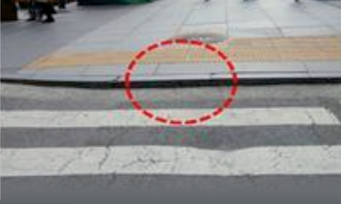 관련 법규에 따르면 횡단보도 진입부에는 휠체어, 유모차 이용자 등이 불편 없이 보행할 수 있도록 단차를 2㎝ 이하로 설치해야 하고 시각장애인의 안전을 위해 점자블록을 통한 안내가 이뤄져야 한다. 하지만 일부 횡단보도의 경사는 기준에 맞지 않았고 점자블록도 제대로 설치되지 않았다.