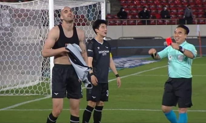 지난 10일 경기도 성남 탄천종합운동장에서 열린 성남FC와 광주FC의 K리그1 경기에서 보기 드문 해프닝이 나왔다. 성남의 외국인 공격수 뮬리치(27)가 후반 9분 이 경기 두 번째 골을 넣고 세리머니를 하다 곧바로 퇴장을 명령받은 것. 전반에 이미 옐로카드를 받았던 사실을 잊고 있던 그는 멀티골을 터뜨린 흥분에 겨워 유니폼 상의를 벗다 탈의 금지 규정에 의해 이날 두 번째 경고를 받았다. 상황을 깨달은 뮬리치의 얼굴은 곧바로 굳어버렸다.