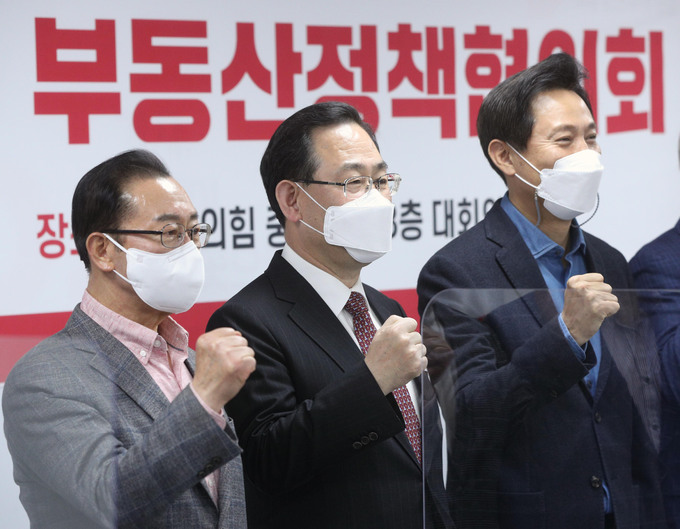 국민의힘 주호영 대표 권한대행 겸 원내대표 등 당 지도부는 이날 서울 여의도 중앙당사에서 오 시장과 부동산정책 협의회를 열었다. 서울시에선 도시계획국장 등 주택 정책 관계자들이 참여했다. 이 자리에서 오 시장은 “서울시 혼자 힘으로 해결하기 힘든 점이 많다”며 더불어민주당 의원이 절대 다수인 시의회와의 관계, 국토교통부를 비롯한 중앙정부와 관계, 국회에서 법 개정이 필요한 부분 등을 당과 협의 사안으로 거론했다. 오 시장은 또 “당이 시의회나 중앙정부와 문제를 풀어가는데 도움을 줬으면 좋겠다”며 “입법이 필요하거나 기존 법령을 개정해야 할 경우 이 부분도 서둘러 주실 것을 요청드렸다”고 덧붙였다.