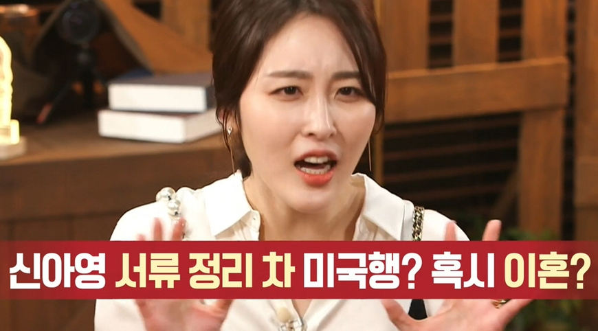 그러자 방송인 강호동은 “남편분은 미국에 계셔서 장거리 신혼생활 중이시다. 최근에 미국에 다녀오셨는데 왜 다녀오셨냐”며 “서류를 정리하러 가신 것 아니냐”고 물었고 신아영은 “남편이 미국에 있었고 저는 한국에 있었기 때문에 자유롭게 오갈 수 있는 통로가 막혀있었다”라고 털어놨다.