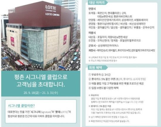 JTBC에 따르면 롯데백화점 평촌점 홈페이지에 올라온 평촌 시그니엘 클럽 회원 모집 광고에는 무료주차 하루 3시간, 특정 카드 구매 시 5% 할인쿠폰 등 회원에게 제공되는 각종 혜택들이 적혀 있다.