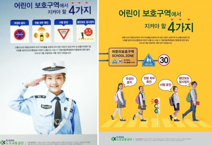 ‘어린이보호구역에서 지켜야 할 4가지’라는 제목의 포스터는 운전자들에게 ▲주정차 금지 ▲전방 좌우 확인 ▲서행 운전 ▲횡단보도 일시정지를 당부했는데, 포스터 하단에 하늘색 중국 공안 정복 차림으로 경례하는 어린이가 포함되면서 문제가 발생했다.