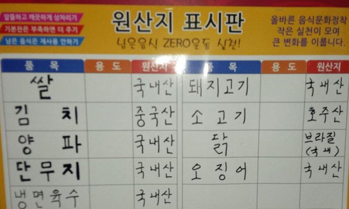 강원도의 한 김치찌개 전문점은 중국산 배추김치를 구입해 찌개로 조리·판매하면서 메뉴판에 ‘국산’ 김치를 사용했다고 거짓표시했다. 대전의 한 일반음식점은 중국산 배추김치를 구매해 국내산과 혼합한 뒤 보쌈김치로 판매하면서 국내산이라고 속였고, 경기도의 한 만두전문점도 김치만두에 중국산과 국산 김치를 혼합해 사용하면서 원산지를 국산으로 표기했다.