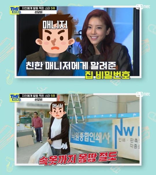 나아가 “이후 매니저는 다행히 잡았지만 모든 물건은 이미 팔아버린 상태라 손담비는 가구 전체를 새로 구매해야 했다고 한다”고 덧붙였다.