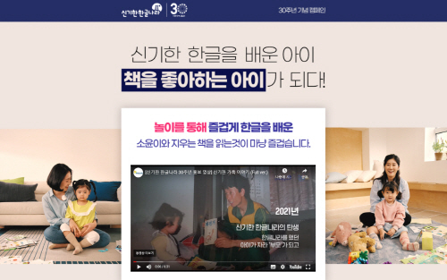 교육전문기업 한솔교육(대표 김인환)의 신기한 한글나라가 30주년을 맞았다. 이를 기념하며 한글 떼기를 넘어 ‘책을 좋아하는 아이’로 성장시키겠다는 신기한 한글나라의 브랜드 가치를 환기시키고자 캠페인 사이트를 제작하고 다양한 이벤트를 마련했다. 사이트에서는 30년의 역사를 돌아볼 수 있는 영상과 캠페인 등 신기한 한글나라의 다양한 모습을 확인할 수 있다.