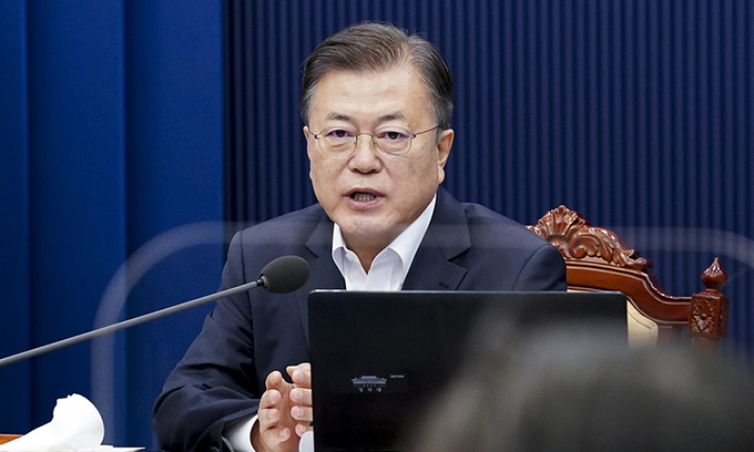 문재인 대통령이 11일 청와대 여민관에서 열린 제20회 국무회의에서 발언하고 있다. 연합뉴스