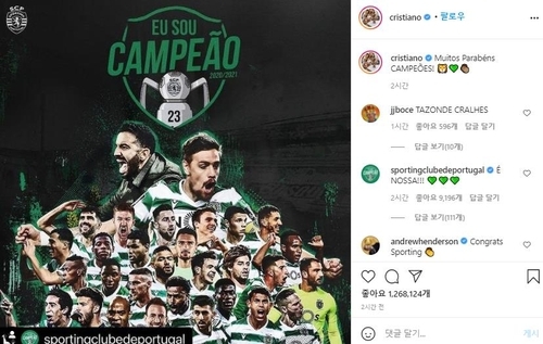 한편, 이탈리아 세리에A에서 뛰고 있는 호날두는 이날 자신의 SNS에 스포르팅 선수단의 우승 사진과 함께 '축하해 챔피언'이라는 글을 올렸다.