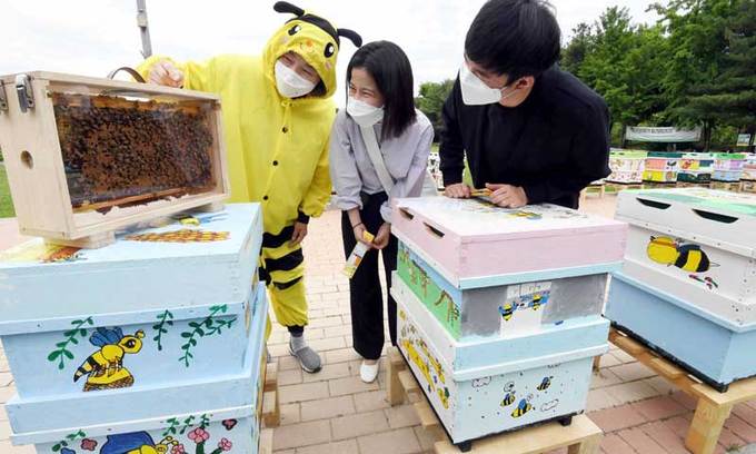 서울숲 꿀벌정원 입력 : 2021-05-20 22:53:28 수정 : 2021-05-20 22:53:27 구글 네이버 유튜브 20일 서울 성동구 서울숲 꿀벌정원에서 열린 양봉체험 행사에서 도시양봉가 그룹 어반비즈서울 관계자가 시민들에게 꿀벌의 생태에 대해 설명하고 있다. 이날은 유엔이 지정한 ‘세계 꿀벌의 날’이다. 남제현 선임기자 Copyright ⓒ 세계일보. 무단 전재 및 재배포 금지 세계일보 -