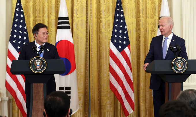 미·중 사이에서 전략적 모호성을 고수하던 문재인정부가 이번 공동성명에서 미국 쪽으로 한발 다가섰다는 평가를 받는다. 국익을 염두에 둔 고육책일 것이다. 임기 내 남북관계 진전을 위한 임시방편으로 미국의 중국 견제에 호응한 것이 아니길 바란다. 정부의 외교 무게추가 미국으로 기울수록 중국의 압박이 거세지면서 불협화음이 커질 우려가 있다. 이제 ‘차이나 리스크’에 어떻게 대처하느냐가 한국 외교의 시험대로 떠올랐다.