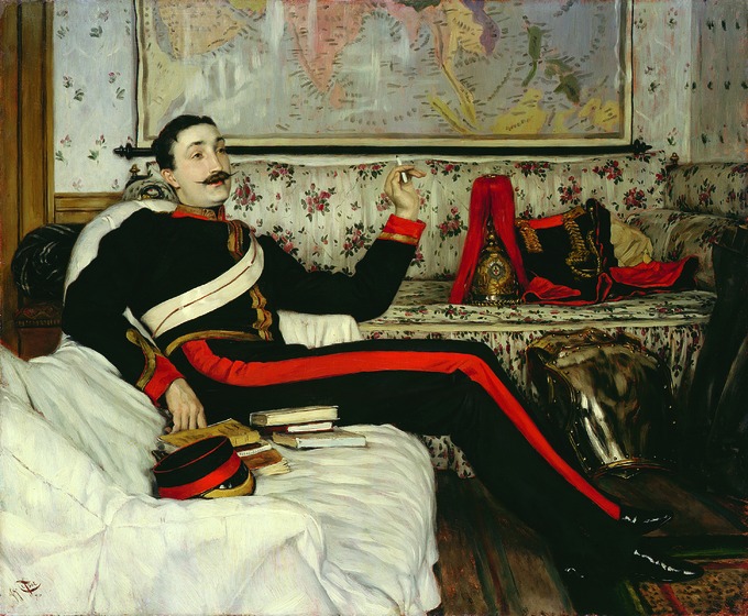 소파에 반쯤 드러 누운 자세가 일단 눈길을 끕니다. 다리를 꼬았고, 손에는 담배를 들고 있습니다. 하얀 피부와 잘 정돈된 콧수염은 시쳇말로 ‘뺀질이’ 같다는 느낌도 줍니다. 박물관은 “기존의 군인 초상화들이 대개 서 있는 자세이거나 말을 탄 모습이었던 것과는 달리 편안하고 격의 없는 모습”이라고 소개했습니다. 관람객 저마다의 감상이 있겠으나 거만하다, 싶을 정도의 자신감을 거리낌없이 드러내고 있는 초상화가 아닌가 싶습니다.