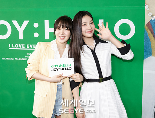 레드벨벳 웬디(사진 왼쪽)와 조이가 31일 오후 첫 번째 솔로앨범 ‘안녕 (Hello)’의 발매기념 온라인 음감회에 참석해 포즈를 취하고 있다.