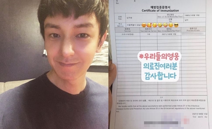 공개된 사진 속에는 얀센 백신을 맞았다고 적힌 예방접종증명서가 담긴 가운데, 임주환은 그 위에 의료진을 향한 감사 문구를 추가해 눈길을 끌었다.