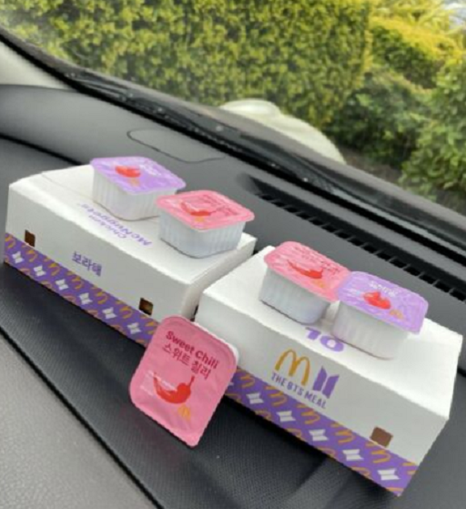 지난 10일(현지 시각) 영국 데일리메일은 온라인몰 이베이에 ‘BTS세트’의 소스와 맥너겟 박스, 보라색 음료 컵, 메뉴를 싸주는 포장지 등을 재판매하는 사람들이 생겨나고 있다고 보도했다.