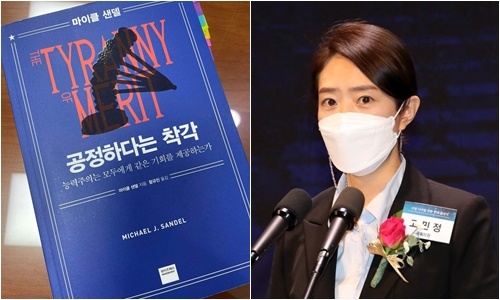 고민정 더불어민주당 의원이 미국 하버드대학교 마이클 샌델 교수의 저서를 인용해 ‘능력주의’를 비판했다. 이에 이준석 국민의힘 대표를 ‘저격’한 게 아니겠느냐는 추측이 나왔다.