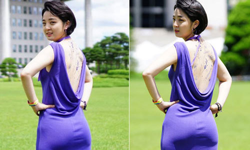 류호정 의원, 등 파인 드레스 입고 타투 퍼포먼스