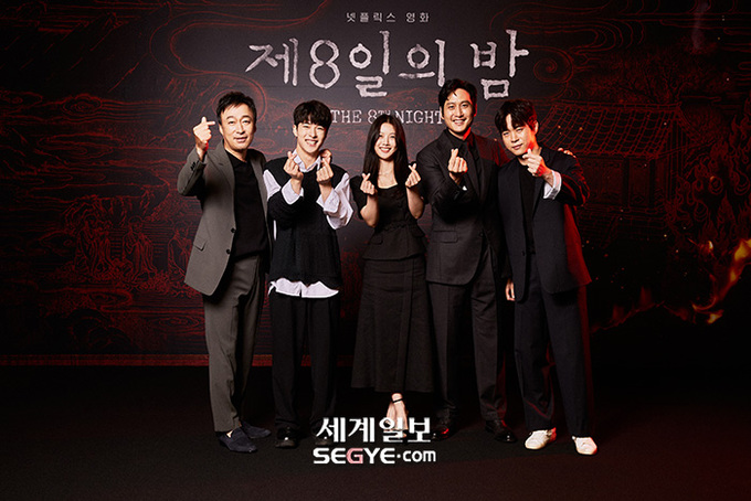 배우 이성민, 남다름, 김유정, 박해준, 김동영(사진 왼쪽부터)이 28일 오전 온라인으로 진행된 넷플릭스 영화 '제8일의 밤' 제작보고회에 참석해 포즈를 취하고 있다.