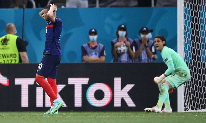 이어진 연장전에서 양 팀은 균형을 깨지 못하고 끝내 승부차기에 돌입했고, 마지막 순간에 스위스가 웃었다. 스위스의 5명 키커가 모두 슈팅을 성공시킨 가운데 음바페가 마지막 키커로 나섰고, 그가 날린 슈팅이 스위스 골키퍼 얀 좀머(33·묀헨글라트바흐)의 손에 걸렸다. 최대 이변의 주인공이 된 스위스 선수들의 환호 속에 음바페는 고개를 떨궈야 했다.