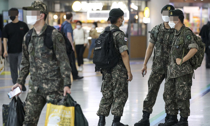 11일 오전 서울 용산구 서울역에서 군인들이 발걸음을 옮기고 있다. 뉴시스