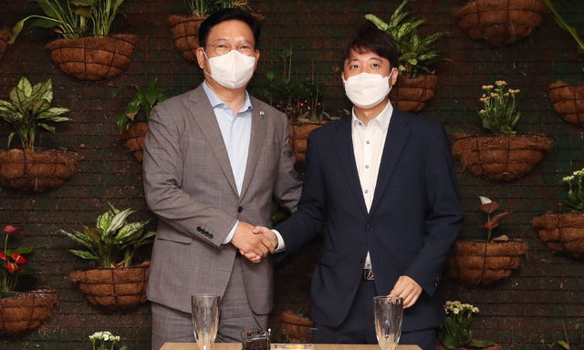 더불어민주당 송영길 대표와 국민의힘 이준석 대표. 뉴시스