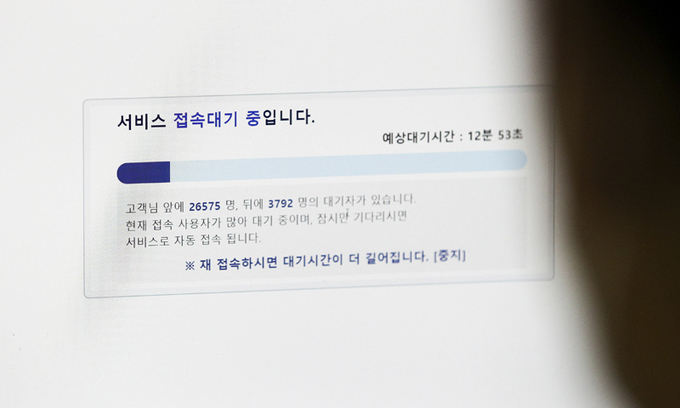55~59세를 대상으로 모더나 코로나19 백신 접종 사전예약이 시작된 지난 12일 오전 코로나19 예방접종 사전예약 홈페이지에 대기화면이 나오고 있다. 뉴시스