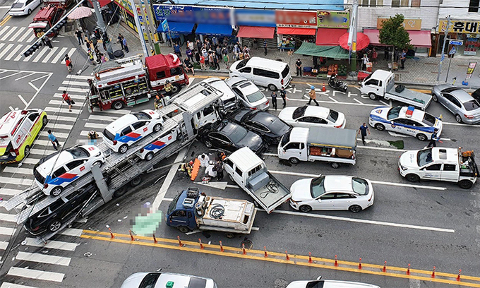 횡단보도 덮친 탁송차량… 공공근로 노인 등 12명 사상