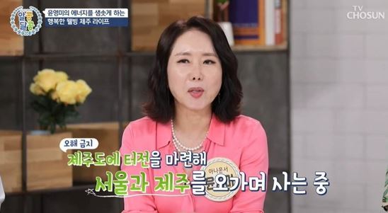 이날 방송에서 “두 집 살림 중”이라고 밝힌 윤영미는 “제주도에 집을 얻어서 1년 반 정도 서울에서 왔다 갔다 하고 있다”고 설명했다.