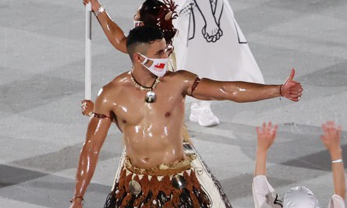 이날 오후 일본 도쿄 올림픽 스타디움에서 열린 개회식에서 122번째로 입장한 통가의 피타 타우파토푸아(태권도)는 상반신에 오일을 발라 번쩍거리는 근육을 드러낸 채 개회식장에 기수로 들어섰다.