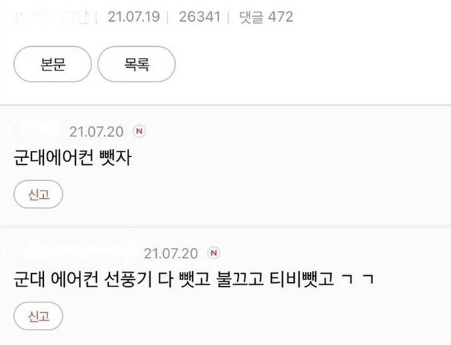 "군대 에어컨 꺼라"...여초 커뮤니티 댓글에 또 젠더갈등 심화돼