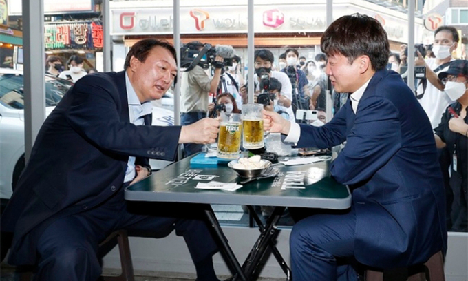 윤 전 총장이 지난달 25일 이 대표와 서울 광진구 한 치킨집에서 회동하며 맥주를 마시고, 이틀 뒤 부산 서구의 한 국밥집에서 국민의힘 부산 국회의원들과 소주를 곁들인 식사를 했다.
