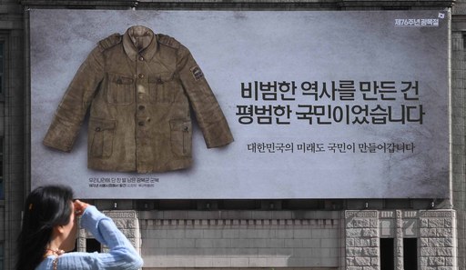 ‘역사의 주인공은 국민’ 입력 : 2021-08-10 01:00:00 수정 : 2021-08-10 00:12:07 남제현 선임기자 구글 네이버 유튜브 제76주년 광복절을 앞두고 9일 서울 중구 서울시청 앞 서울도서관 외벽 꿈새김판에 ‘비범한 역사를 만든 건, 평범한 국민이었습니다’라는 문구와 광복군 군복 사진이 걸려 있다. 이 군복은 우리나라에 남아 있는 유일한 광복군 군복으로 국가등록문화재 제460호다. - 기자 Copyright ⓒ 세계일보. 무단 전재 및 재배포 금지 세계일보 -