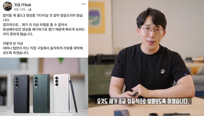 구독자 186만명을 보유한 유명 IT 유튜버 잇섭이 삼성전자의 신제품 ‘갤럭시 Z 폴드3’ 광고를 거절하고 리뷰 영상을 폐기한 이유를 밝혔다.