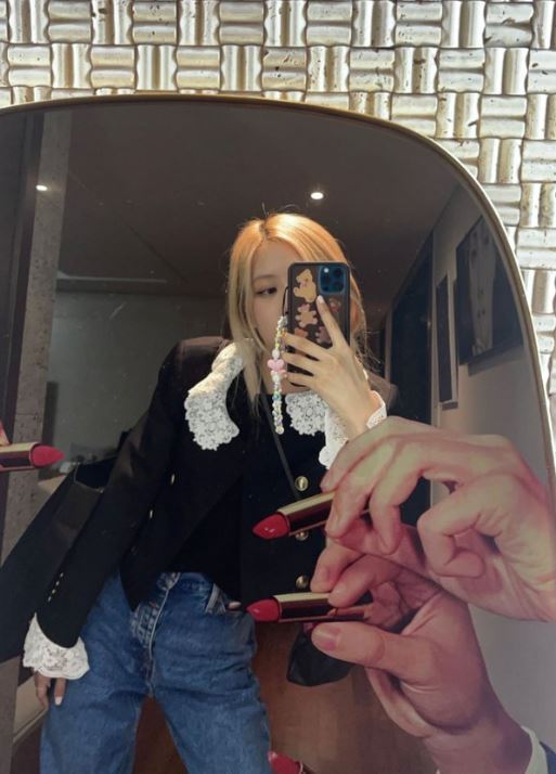 공개된 사진에는 로제가 거울 앞에서 포즈를 취하고 있는 모습이 담겼다. 특히 사진 속 로제는 블랙 컬러의 크롭 재킷에 청바지를 매치해 캐주얼한 스타일을 뽐내는 등 패셔니스타의 면모를 드러냈다.