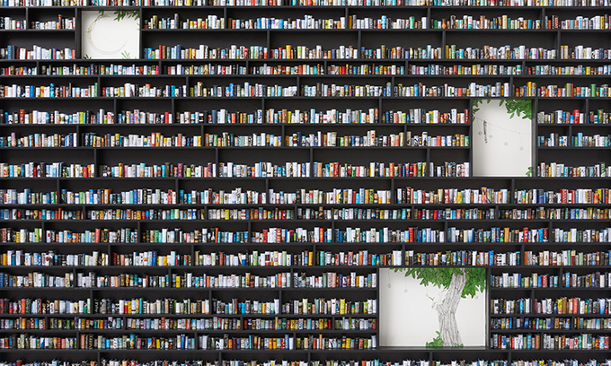 어느 칸에는 헤르만 헤세의 소설 ‘수레바퀴 아래서’가 꽂혀 있다. 그 근처에선 마르셀 프루스트의 소설 ‘잃어버린 시간을 찾아서’가 꽂혀 있다. 눈길을 옮기다 보면 ‘심리학 나 좀 구해줘’를 발견하고, 또 다른 한 칸에서 에세이집 ‘참 좋은 당신을 만났습니다’, ‘울지 말고 꽃을 보라’, ‘그래도, 사랑’을 발견한다. ‘고전 강독’, ‘예술과 사회의 경제사’를 지나, 이어 “빨강머리 앤 시리즈네. 니체가 꽂혀 있군. ‘문학, 잉여의 몫’이라니 하, 이런 책이 있구나” 하고 혼잣말을 하게 된다